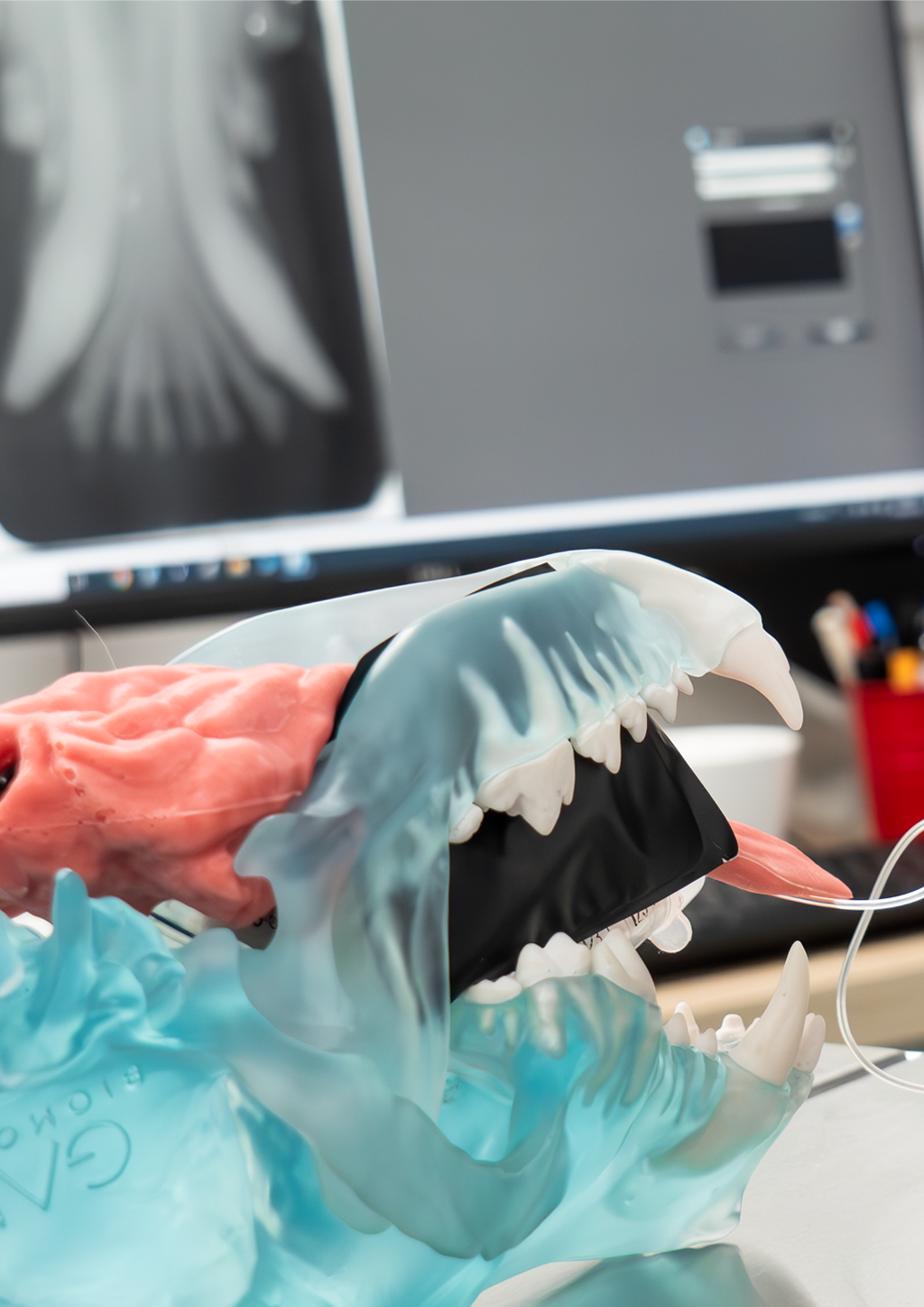 - Transparent skull + radiopaque teeth + realistic TMJ